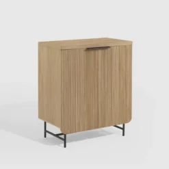 Avalene Modern Farmhouse 2 Door Glass Windowpane Accent Cabinet Rustic Oak – Saracina Home