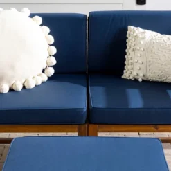 3pc Modular Acacia Wood Patio Chat Set With Cushions – Saracina Home