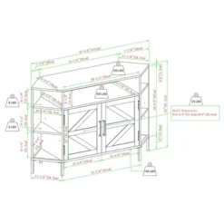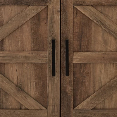 Cabin vibes are just one entertainment console away with Saracina Homeās Atticus Modern Farmhouse 2-Door 48ā Corner TV Stand for TVs up to 55ā. You may feel like youāre in the countryside, but you can stay plugged in and organized with the help of three cord management ports. A convenient blend of open and closed storage is accentuated by adjustable shelves, primed for displaying consoles and decor. The angled, small-space friendly design easily slides against any corner of your living room, so you can make the most of your unique layout. Rustic barn doors combine with the geometric silhouette and raised metal base for a piece that feels right at home in both farmhouse and modern settings. Overall Product Dimensions:Height: 32āWidth: 47.625āDepth: 15.75āCenter Cubby Dimensions:Height: 6.125āWidth: 30.75āDepth: 14.875āTop Side Shelves Dimensions:Height: 6.125āWidth: 10.375āDepth: 14.625ā – 10.375āMiddle and Bottom Side Shelves Dimensions:Height: 9.25āWidth: 10.375āDepth: 14.625ā – 10.375āCabinet Dimensions:Height: 19āWidth: 14.75āDepth: 14āAdditional Dimensions:Leg Height: 5āTabletop Thickness: 0.625ā