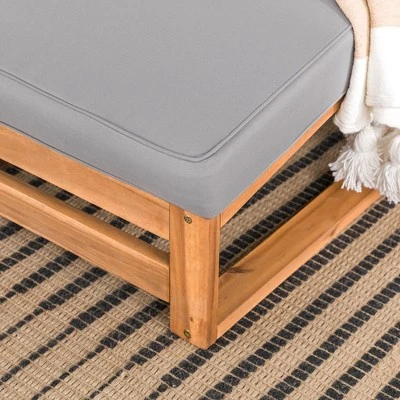 Relax under the warm summer sun in this gorgeous and comfortable outdoor open side chair and ottoman. Featuring soft cushions and durable yet stylish acacia wood, this is truly a winning combination. The angular design of both the chair and ottoman create a modern and contemporary style with classic and traditional elements, ideal for your patio.