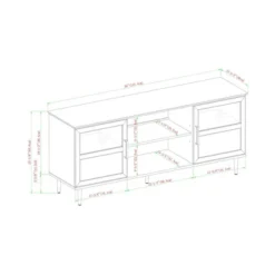 Pop a mid-century modern TV console into your living room with Saracina Home’s 58” Split Panel Entertainment Storage Center. A wide beveled top that accommodates TVs up to 65” highlights this mixed material media stand’s retro class. Powder-coated, tapered metal legs elevate this piece and its vintage appeal. Two side doors—half wood panel and half tempered glass—give you the option of open and closed storage. And slim handles maintain the console’s streamlined look for constant sophistication.