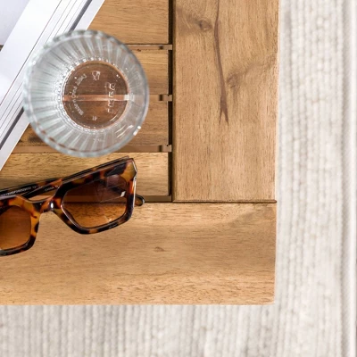 Complete your patio conversation set with this solid wood rectangle coffee table from Saracina Home. Built out of naturally weather resistant acacia wood, this slat-style coffee table is the perfect addition to an outdoor entertaining space because its durable nature means you don’t have to worry about serving your signature summertime refreshments. It’s also a perfect place to set up potted plants. This solid wood coffee table features a low shelf for convenient open storage. Properly care for your outdoor acacia furniture by keeping it out of severe weather conditions and applying teak oil every 2-3 months.