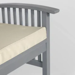 Cozy up in the glow of the setting sun in this classically designed outdoor love seat bench from Saracina Home. This garden armchair is an ideal addition to front porches, patios, or by the pool. This slat-style love seat includes a UV resistant cream cushion that fastens with fabric ties so it doesn’t slide around. The cushion cover is removable and machine washable. Properly care for your outdoor acacia furniture by keeping it out of severe weather conditions and applying teak oil every 2-3 months.