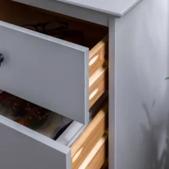 - 3 drawers each for closed storage